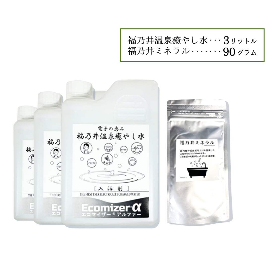 お風呂のお湯(200L)に、「福乃井温泉癒やし水」100mlと「福乃井ミネラル」3g(付属のスプーン1杯)を入れてよくかき混ぜた後、ご入浴ください。