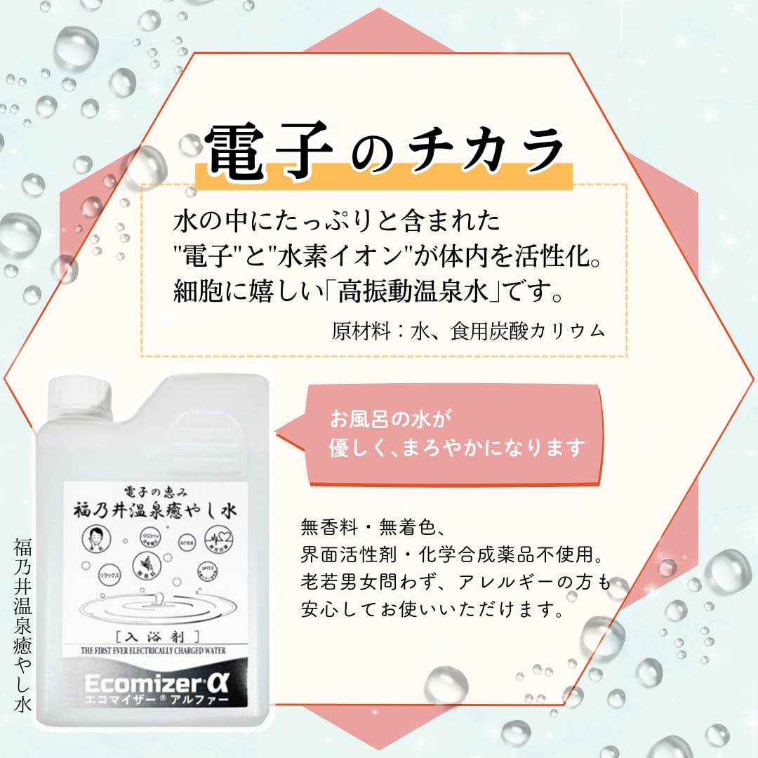 ▼電子の水「福乃井温泉癒やし水」