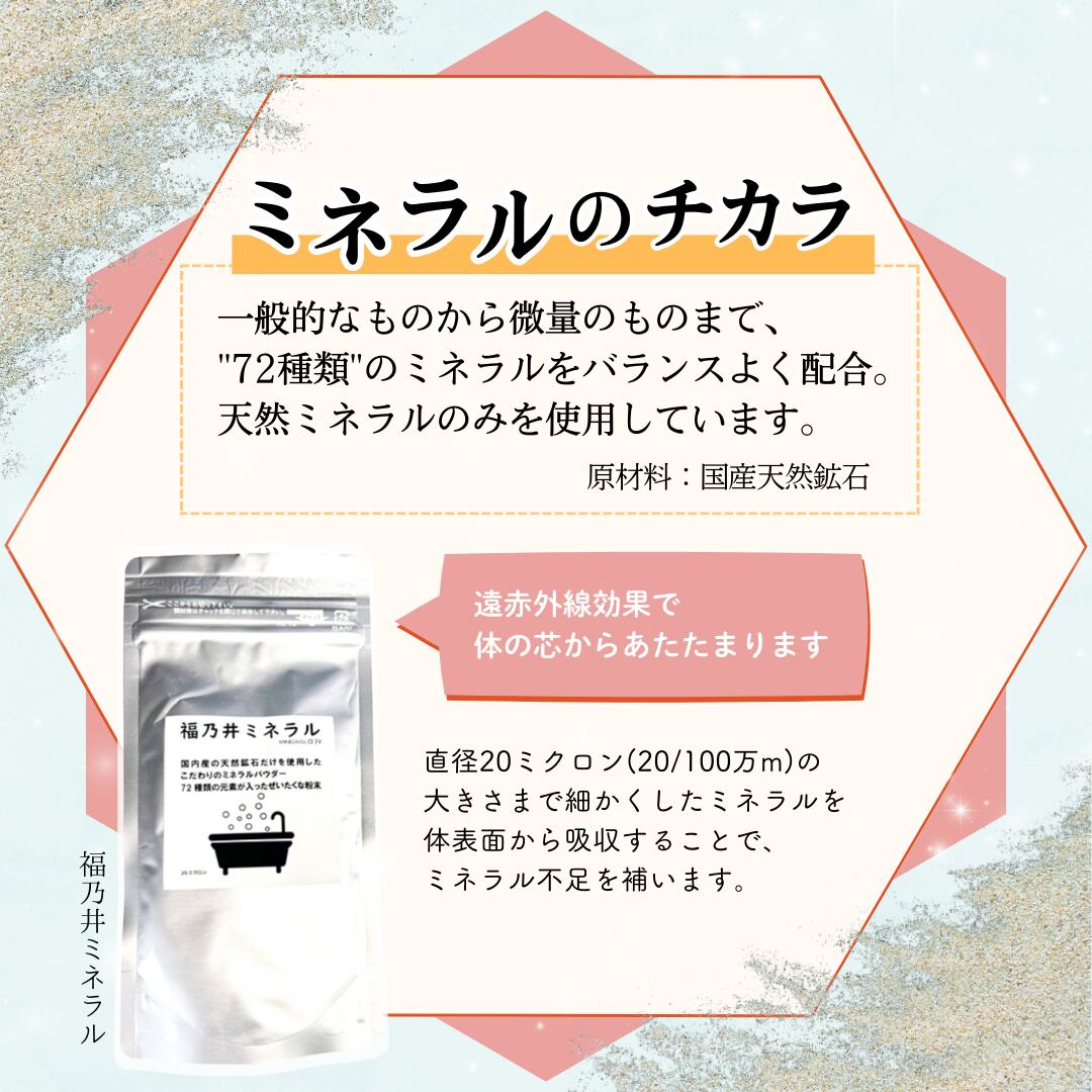 「福乃井ミネラル」は純国産の天然鉱石を20ミクロンの大きさまで細かくした、多元素共存鉱石微粉末です。